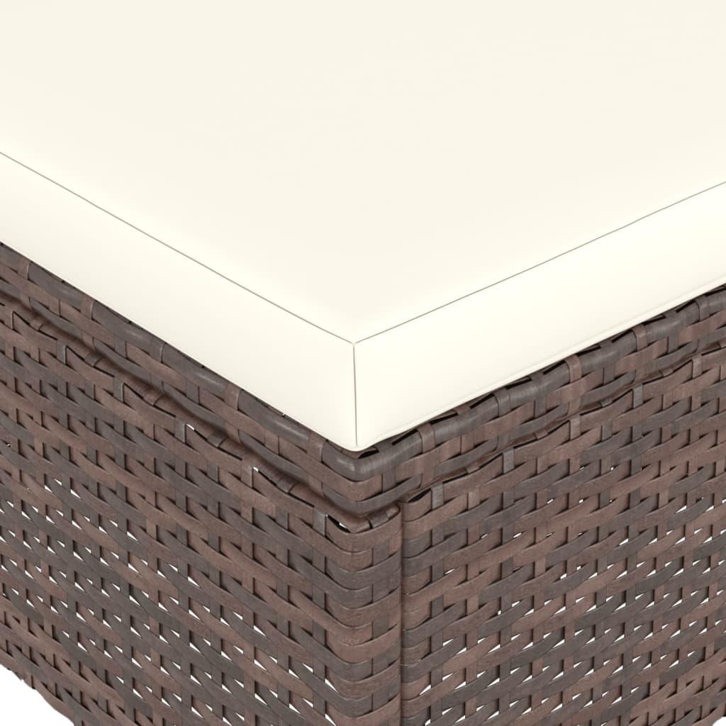 This 4-piece garden chair and stool set makes a perfect complement to your garden, patio and outdoor living space. The garden furniture is made from a strong powder-coated steel frame, making it sturdy and stable for years of relaxation. The outdoor chair and stool set covered with PE rattan is easy to clean with a damp cloth and suitable for daily outdoor use. Additionally, the thickly padded seat cushion adds extra seating comfort to the chair. Note: In order to extend the life of your outdoor furniture, we recommend you to clean it regularly and do not leave it outdoors without protection unnecessarily.Clean: Use a mild soap solution.Storing: If possible, store in a cool, dry place indoors. If the product is stored outdoors, protect it with a waterproof cover. Wipe and dry the excess water or snow from flat surfaces after a rain or snowfall. Allow sufficient air circulation to avoid moisture-related damage.