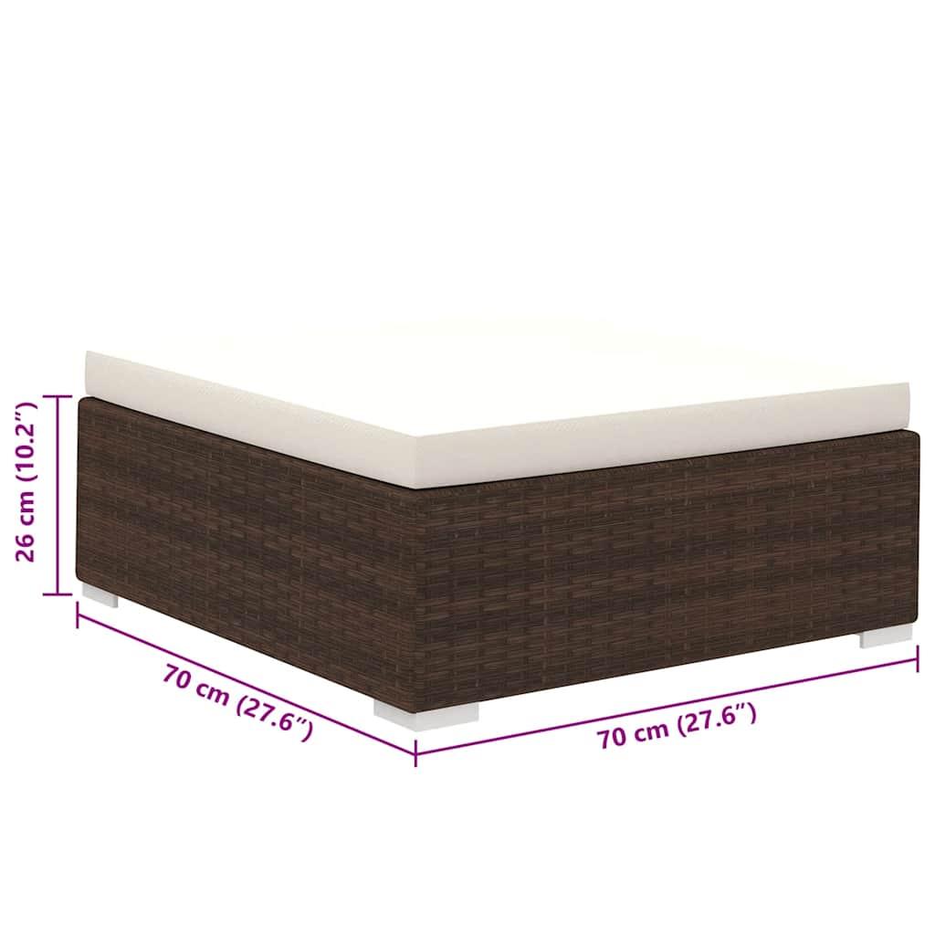 This polyrattan garden set combines style and functionality. It will make a great focal point in your garden or on your patio. The rattan seat set is designed to be used outdoors year round. It is made of full weather resistant and water proof PE rattan. This quality material is hard wearing enough for everyday family use. The seat set is also resistant to UV light, chlorine, and salt water. The seat has a sturdy powder coated steel frame and rust-resistant plastic feet. It is also light weight, making it easy to move around. The 6 cm thick removable seat and back cushions are very comfortable. The easy-to-clean polyester covers with concealed zippers can also be removed and washed. The rattan is very flexible and can be easily moved to suit any setting. Delivery includes 3 x corner seating, 3 x middle seating, 1 x stool, 1 x coffee table with glass top, 7 x seat cushions, 9 x back cushions. Note: We recommend covering the set during rain, snow and frost.