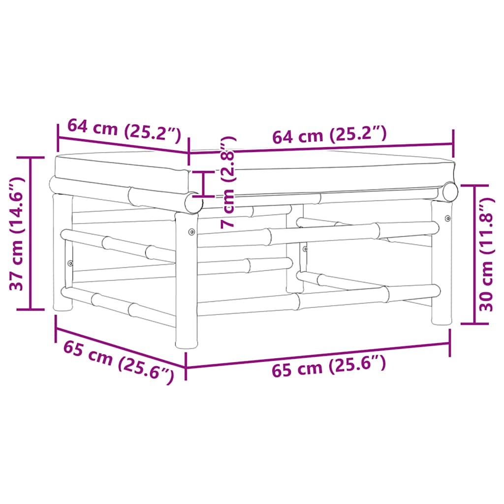 This garden footrest will make a great addition to your garden, terrace, or patio for chatting with family and friends or just enjoying the weather. This ottoman is made of bamboo, making it sturdy and easy to clean. The thickly padded cushion adds extra comfort to your lounging time. With a lightweight construction, the footrest is easy to move around. You can place it in any arrangement as per your preference, thanks to the modular design. Note: In order to extend the life of your outdoor furniture, we recommend you to clean it regularly and do not leave it outdoors without protection unnecessarily.Clean: Use a mild soap solutionStoring: If possible, store in a cool, dry place indoors. If the product is stored outdoors, protect it with a waterproof cover. Wipe and dry the excess water or snow from flat surfaces after a rain or snowfall. Allow sufficient air circulation to avoid moisture-related damage.