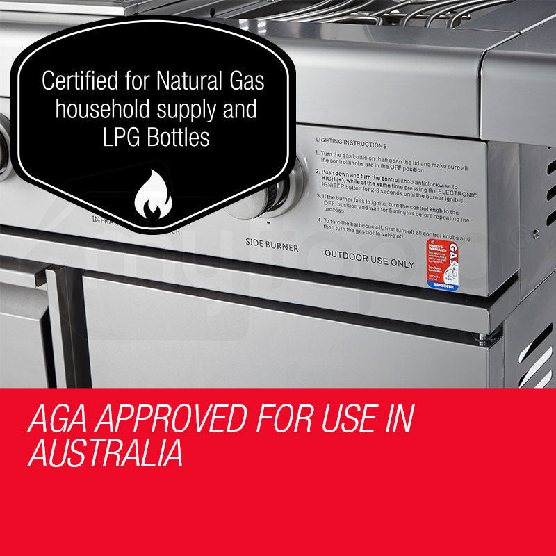 Far from just a BBQ, this state-of-the-art model will create a second kitchen in your backyard. With a massive cooking area, rotisserie, wok burner, serving tables, two cabinets and three spacious drawers, it offers everything you need to stay where the king of the BBQ belongs - by the BBQ.