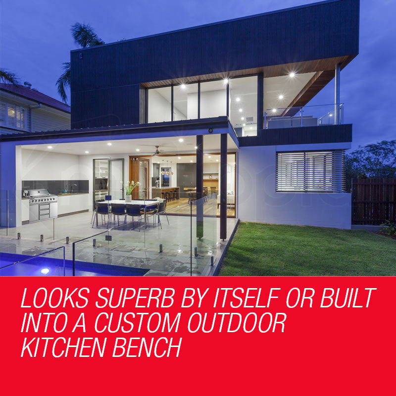A barbeque is more than a party. It's a show. And with its sleek design and true stainless steel construction. EuroGrille are one of the only BBQ's on the market offering the hood, doors, grill, side tables, side panels, rear panel, and base in stainless steel.