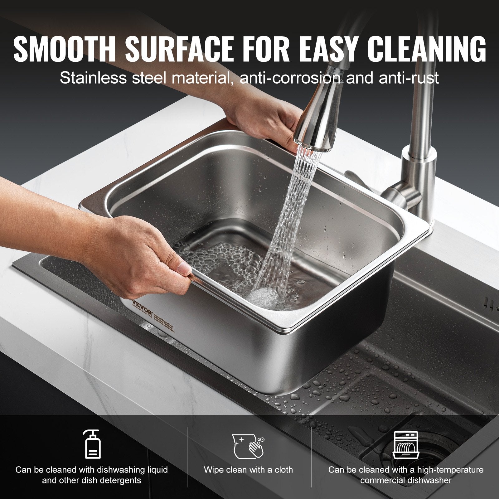 The smooth surface of the catering storage food pan makes it easy to clean. You can clean it with detergent and a cloth, or use a dishwasher for convenience.