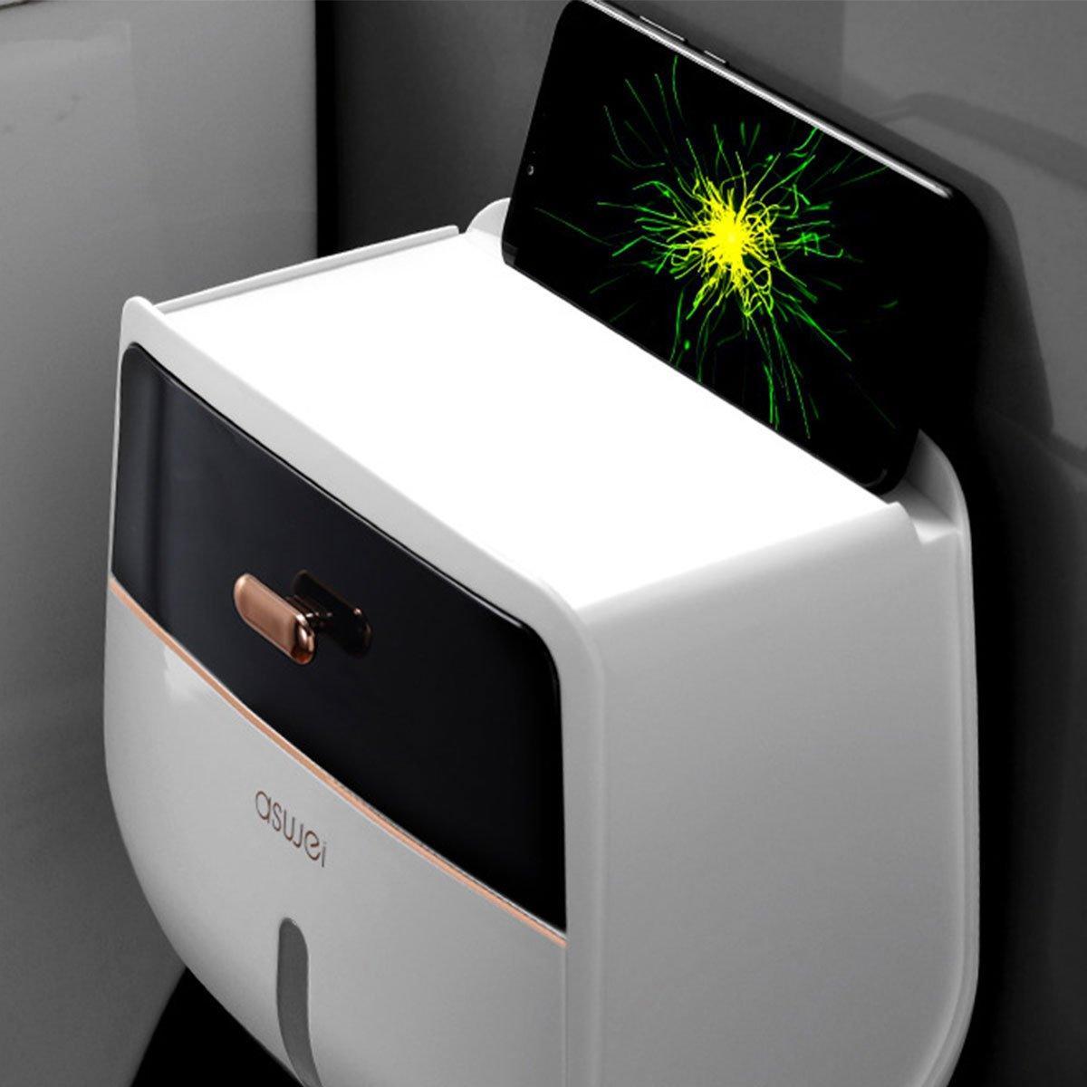 Upgrade your bathroom with this sleek and functional waterproof toilet paper holder. Designed for wall mounting with a non-perforated installation, it requires no drilling, preserving your walls. The secure, waterproof enclosure keeps tissue dry and protected, making it ideal for humid bathroom environments. This tissue box also features a convenient top shelf to hold small items such as a phone, plant, or other accessories. Built with durable, high-quality materials, it ensures long-lasting use while adding a stylish touch to your bathroom decor.