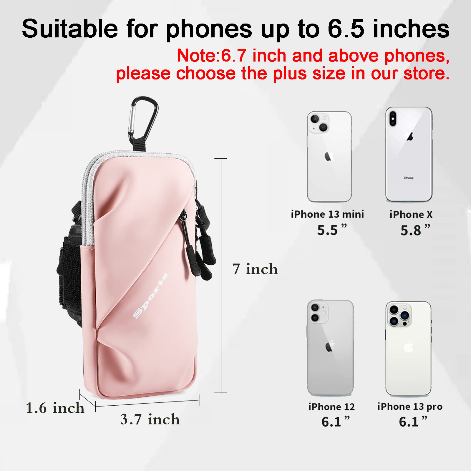 Universal Running Phone Arm Band Waterproof, Dual Pocket, Adjustable Strap, Breathable Mesh, Fits Phones Up to 6.7 Inches, Crossbody Waist Clip