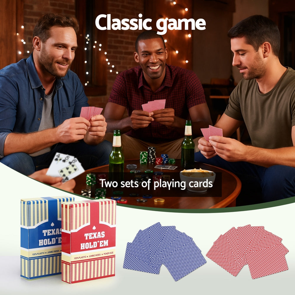 Get ready for serious card nights with this poker chip set. This 500-piece poker chip set features 14g heavyweight poker chips with a double injection iron core, offering that authentic casino feel. It comes neatly packed in a sturdy aluminium case, perfect for transport and storage. Included are Texas Holdem poker chips, a full set of dealer, small blind, and big blind buttons, five red dice, and two sets of playing cards. This professional poker chip set provides everything you need for a ripper game night.