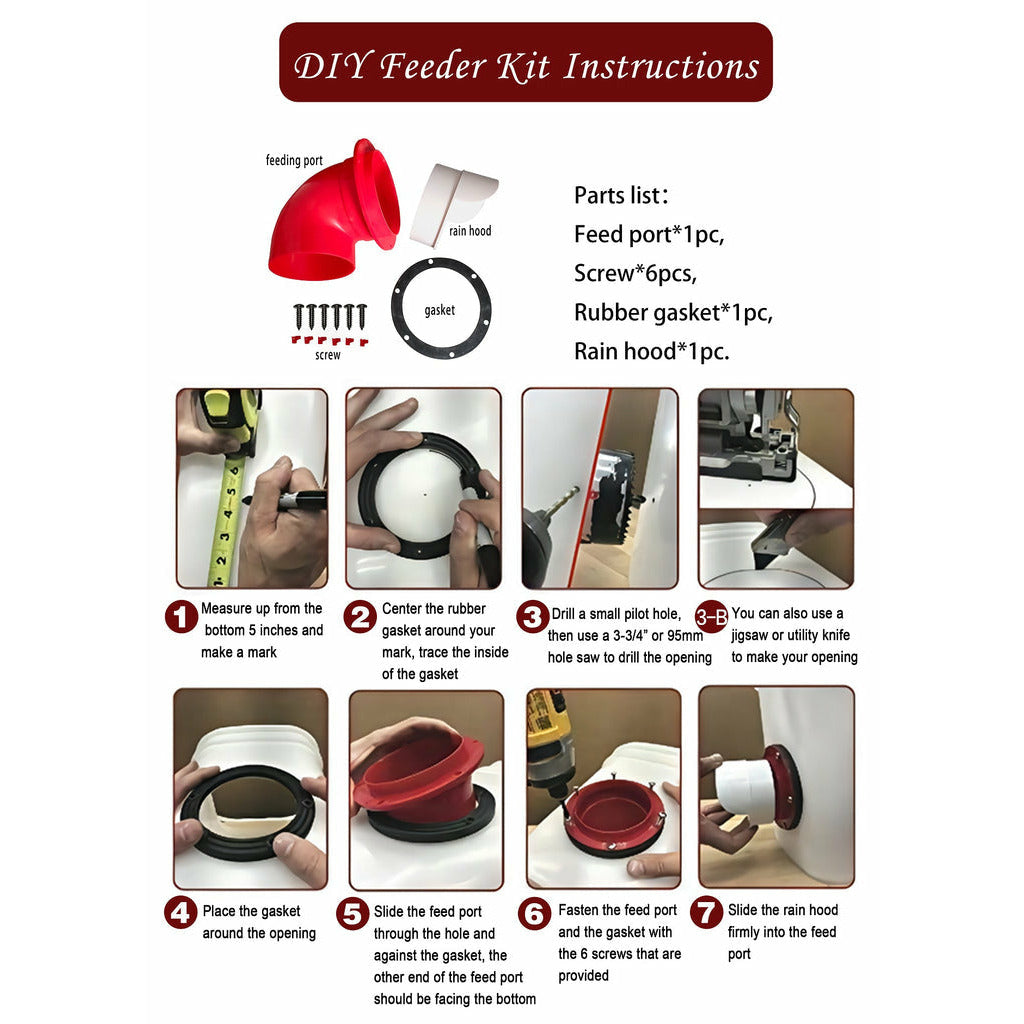 DIY Port PVC Gravity Fed Chicken Feeder Use to make a feeder from Buckets Barrels Bins.