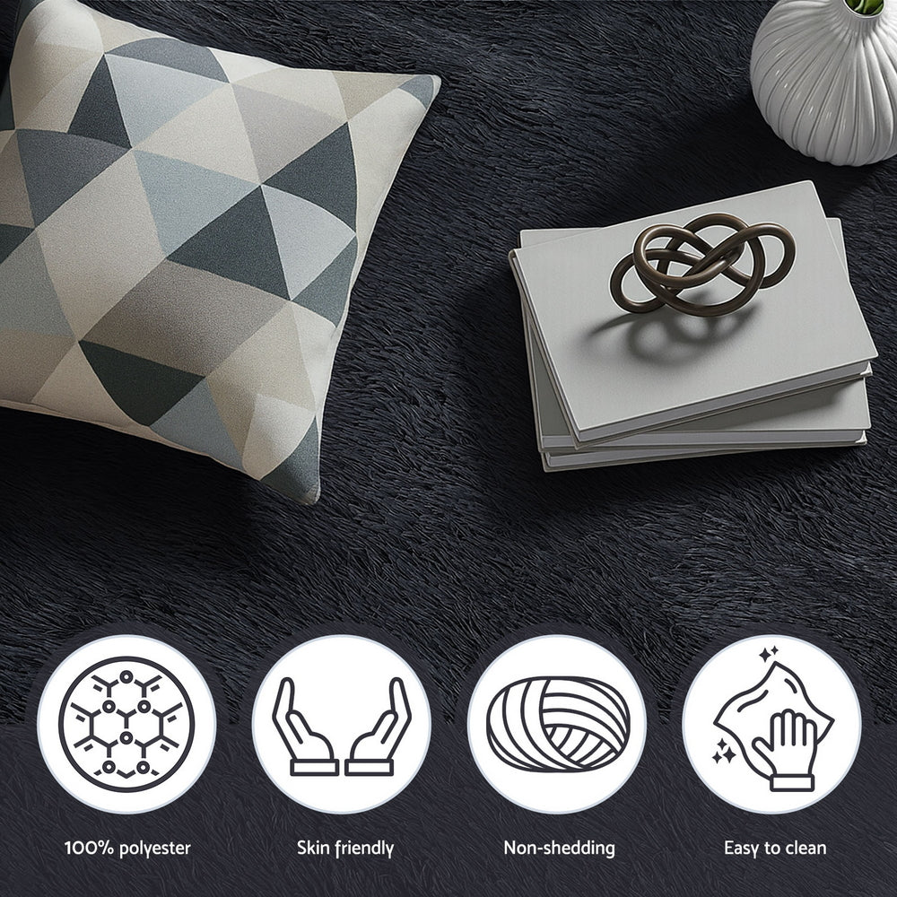 Step onto pure luxury with the Artiss Shaggy Rug. This plush area rug features a deep, soft pile with built-in foam cushioning for ultimate comfort. Its modern black design and anti-slip backing make it the perfect floor carpet for any living room or bedroom, adding warmth and style.