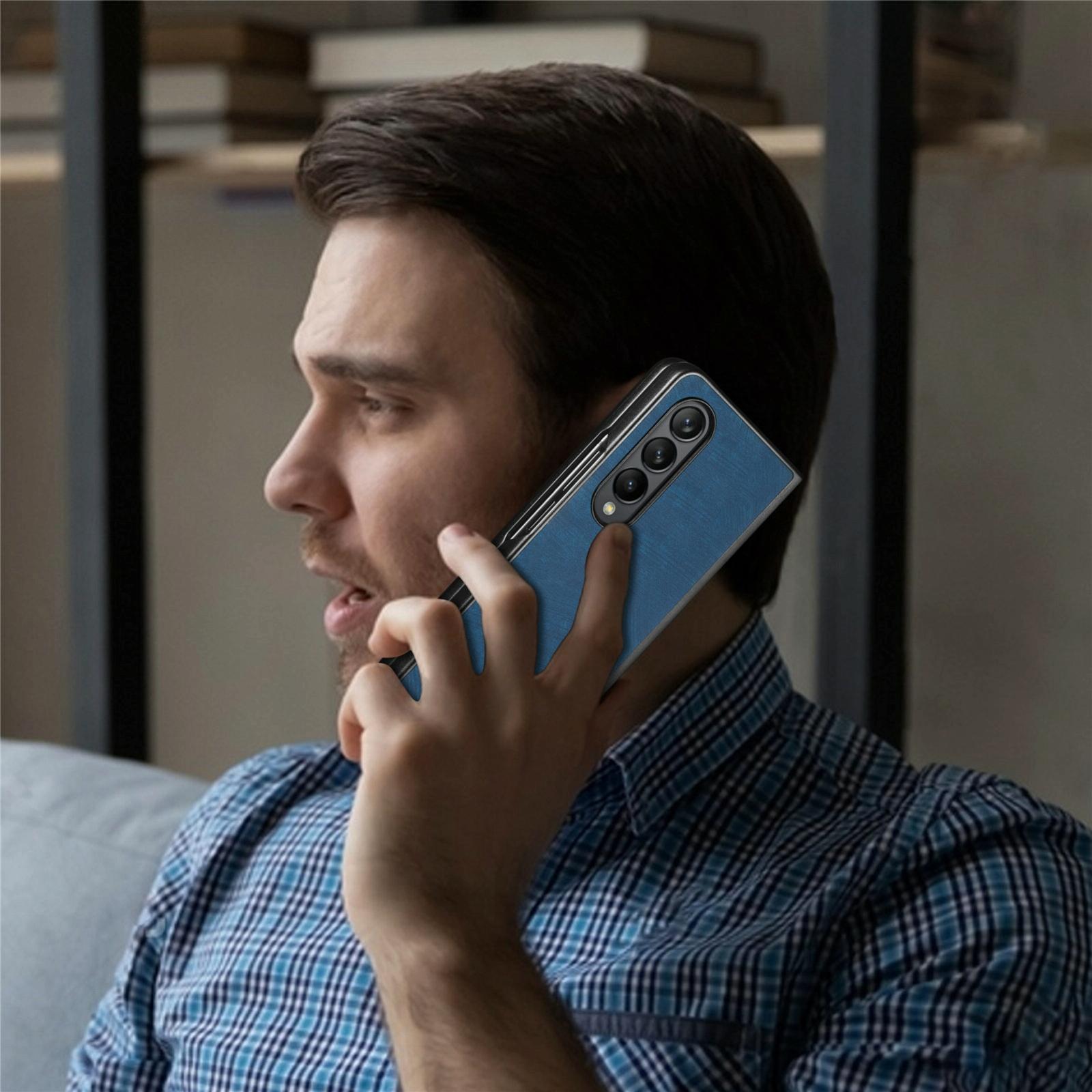 For Samsung Galaxy Z Fold4 5G Pu Back Cover - Solid Colour - Blue