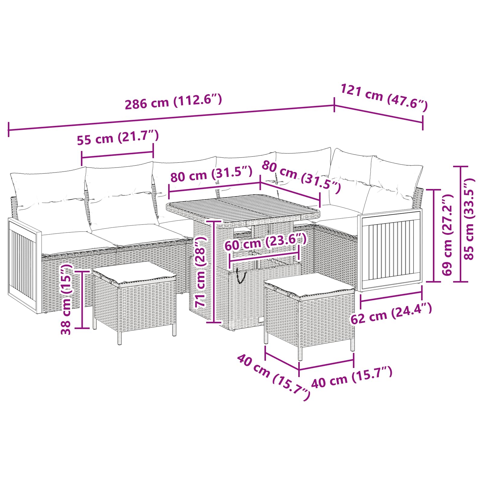 The Garden Sofa Set with Cushions made from poly rattan is a stylish addition that turns outdoor spaces into comfy retreats. With its clean lines and minimal look, this set is all about kicking back in the garden or on the terrace. The woven texture and lovely brown colour bring some warmth to any area. It’s built for comfort, making it perfect for anyone wanting a modern vibe without skimping on quality. Woven Texture: This Garden Sofa Set has a lovely woven design that adds elegance and a nice feel. The intricate weaving boosts the look and durability of the furniture, making it a standout for those who want something stylish and tough outdoors. High-Quality Components: Built with powder-coated steel and solid acacia wood, every part of this set is chosen for its weather resistance. These materials are known for lasting a long time, so your garden sofa set will stay strong in your outdoor area. Functional Features: The sofa set comes with cushions that you can easily remove and replace, adding convenience for maintenance. Clean up spills quickly or swap out worn cushions without hassle, keeping the set looking sharp for outdoor fun. Versatile for Outdoor Use: Designed specifically for outdoor settings, it’s a fab choice for gardens and terraces. Whether you're hosting lively get-togethers or enjoying a peaceful evening, this set fits right in for all outdoor moments. Care & Maintenance: To keep the set looking great, cover it when you’re not using it and give it a quick wipe down with a damp cloth. These easy steps will help keep the set in good shape for years, ensuring hassle-free enjoyment.