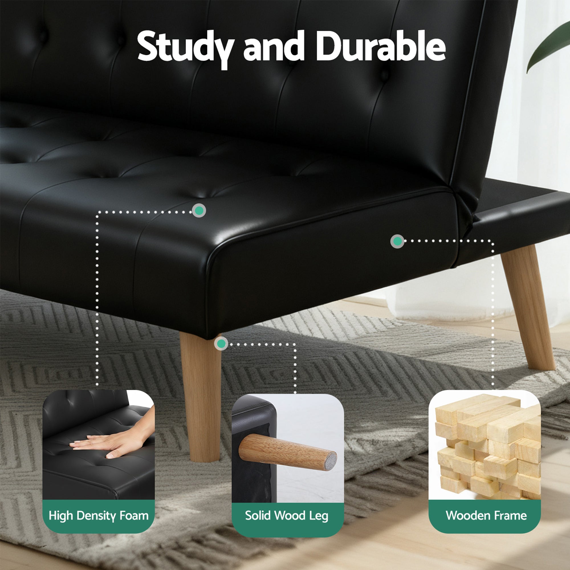 Artiss Sofa Bed Couch 2 Seater Lounge Fabric Black
