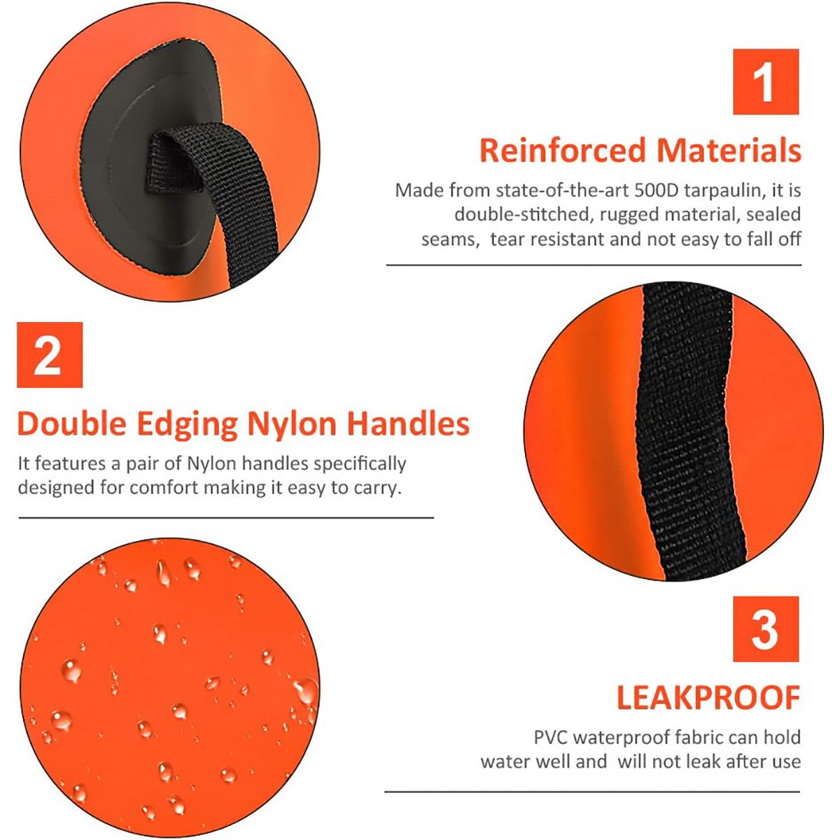 ? Heavy-duty 500D PVC construction with sealed seams for water resistance