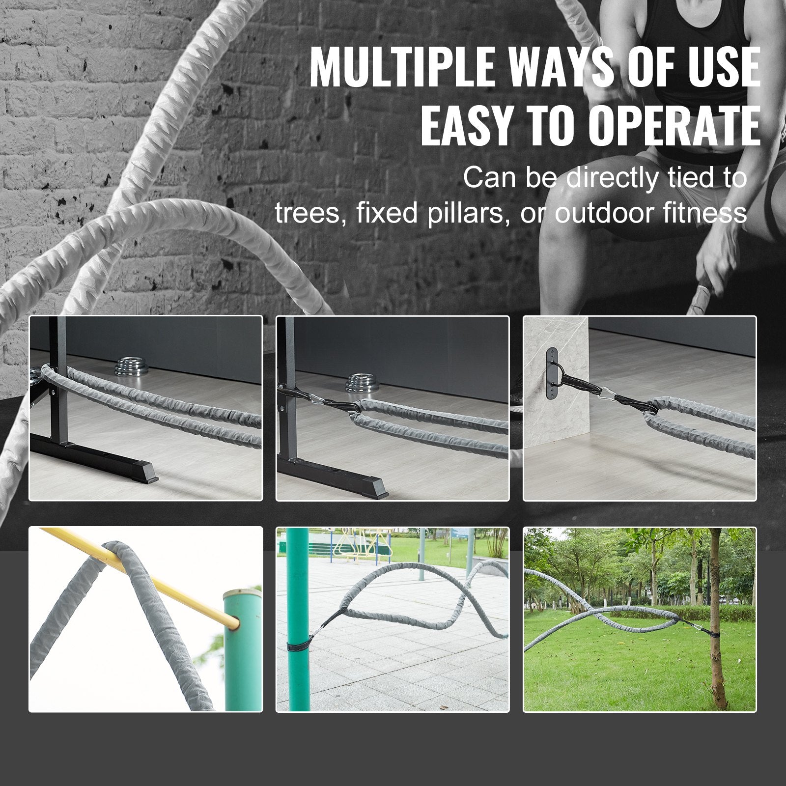 We offer a variety of 30-foot and 40-foot battle ropes with a thickness of 1.5 inches. Longer exercise battle ropes are suitable for fitness professionals, while shorter ones are perfect for beginners for daily home workouts. Choose according to your preference.