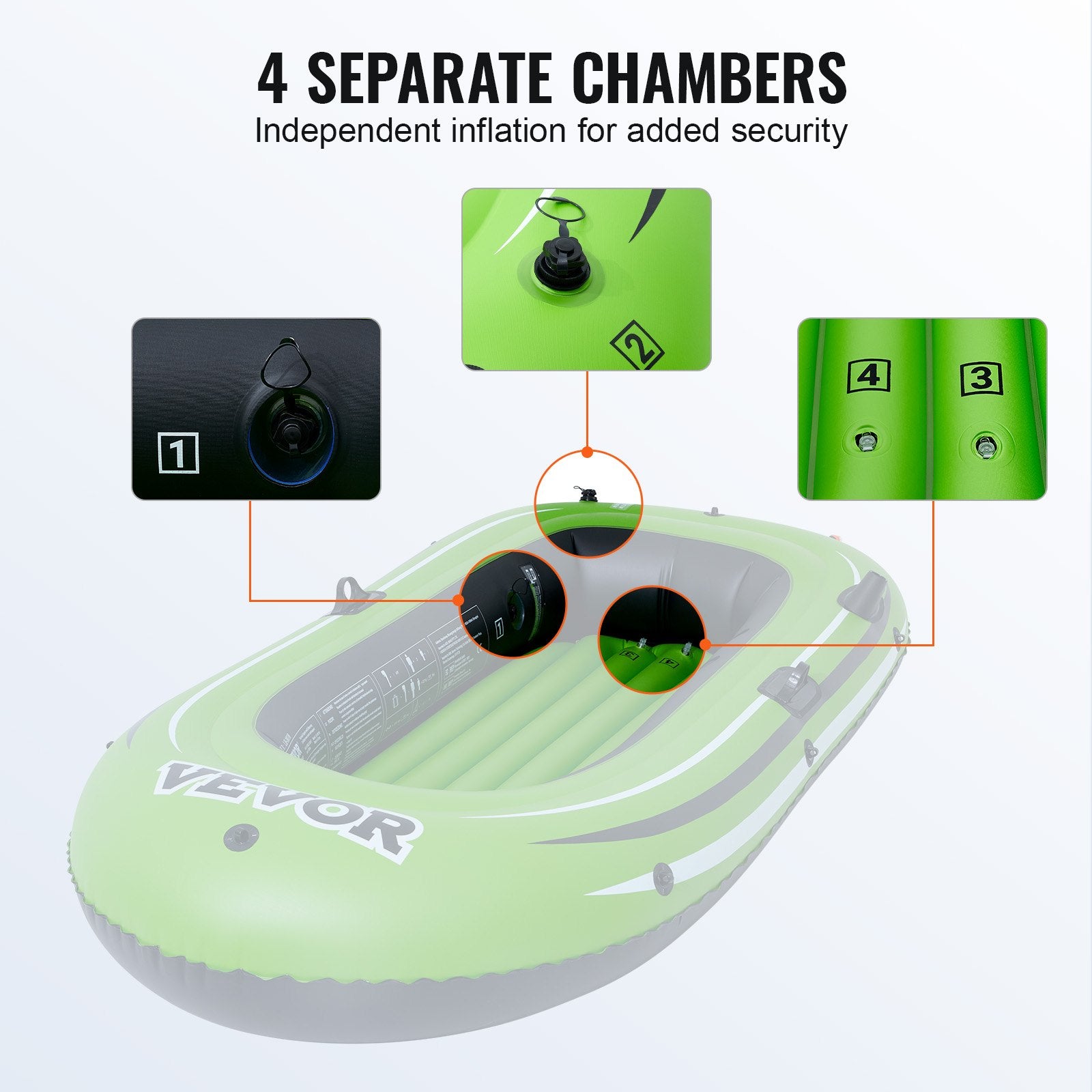 VEVOR Inflatable Boat, 2-Person Inflatable Fishing Boat, Strong PVC Portable Boat Raft Kayak, Includes 1158 mm Aluminum Oars, High-Output Pump and Fishing Rod Holders, 227 kg Capacity for Adults, Kids