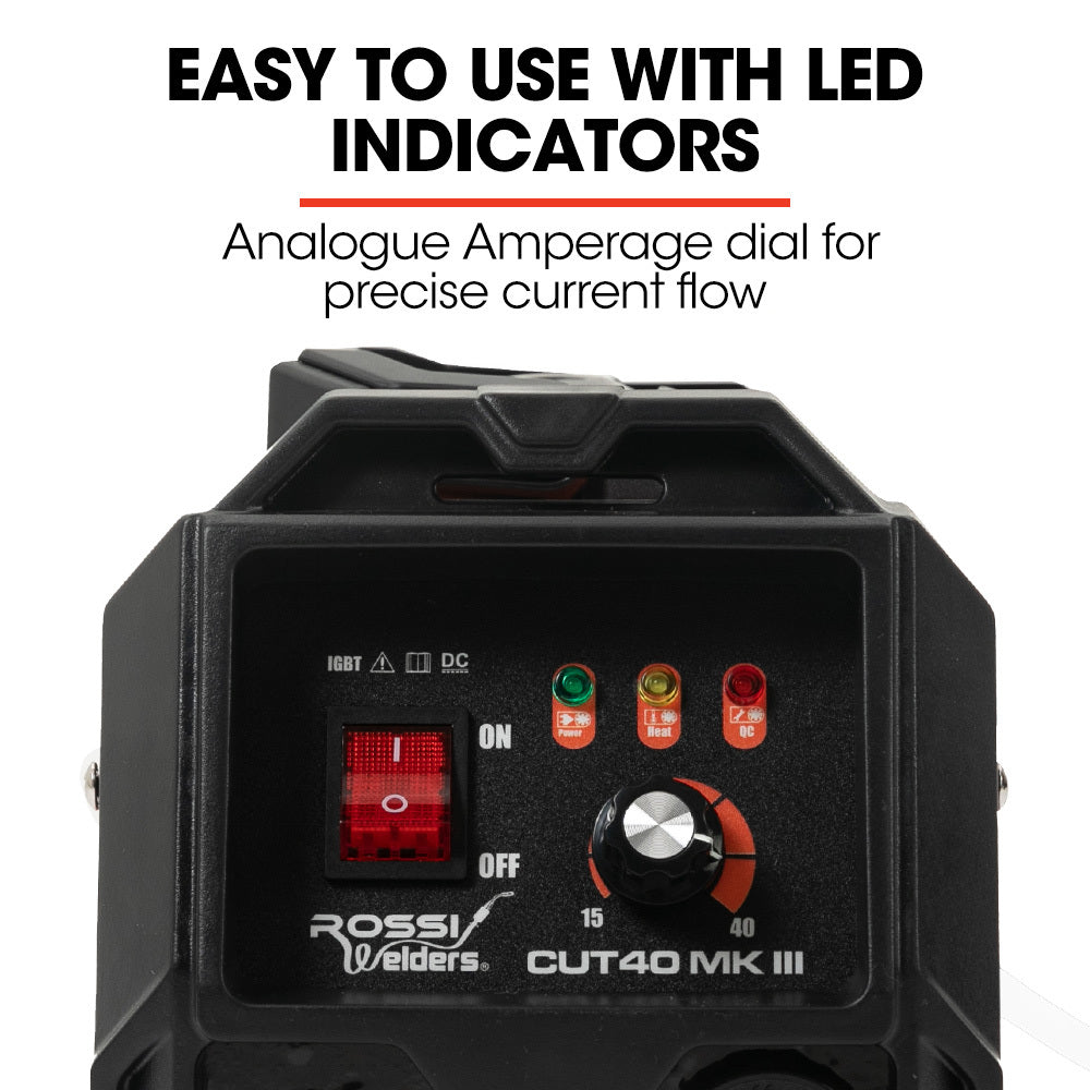 The Rossi Cut40 Series II Inverter Plasma Cutter is the perfect high power plasma torch for those jobs that need a little more grunt. This powerful, lightweight inverter has true DC inverter technology and is utilised in the most efficient way possible to produce 96V at up to 40A.