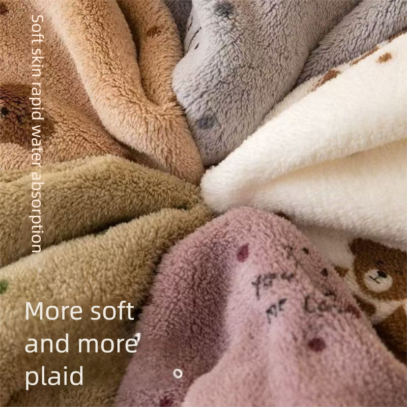 Crafted from premium plush fabric, this towel set delivers exceptional softness and quick-drying performance. The dense weave structure enhances water absorption while maintaining a lightweight feel. Each towel features a consistent printed design with a small bear figure and scattered dots, adding a touch of charm to routine care. The edges are neatly finished with double-stitched binding to prevent unraveling over time. Suitable for facial cleansing, hand drying, or light bath use, these towels are designed for comfort and durability. The material is treated with eco-friendly dyeing techniques to minimize fiber loss and color bleed during laundering.