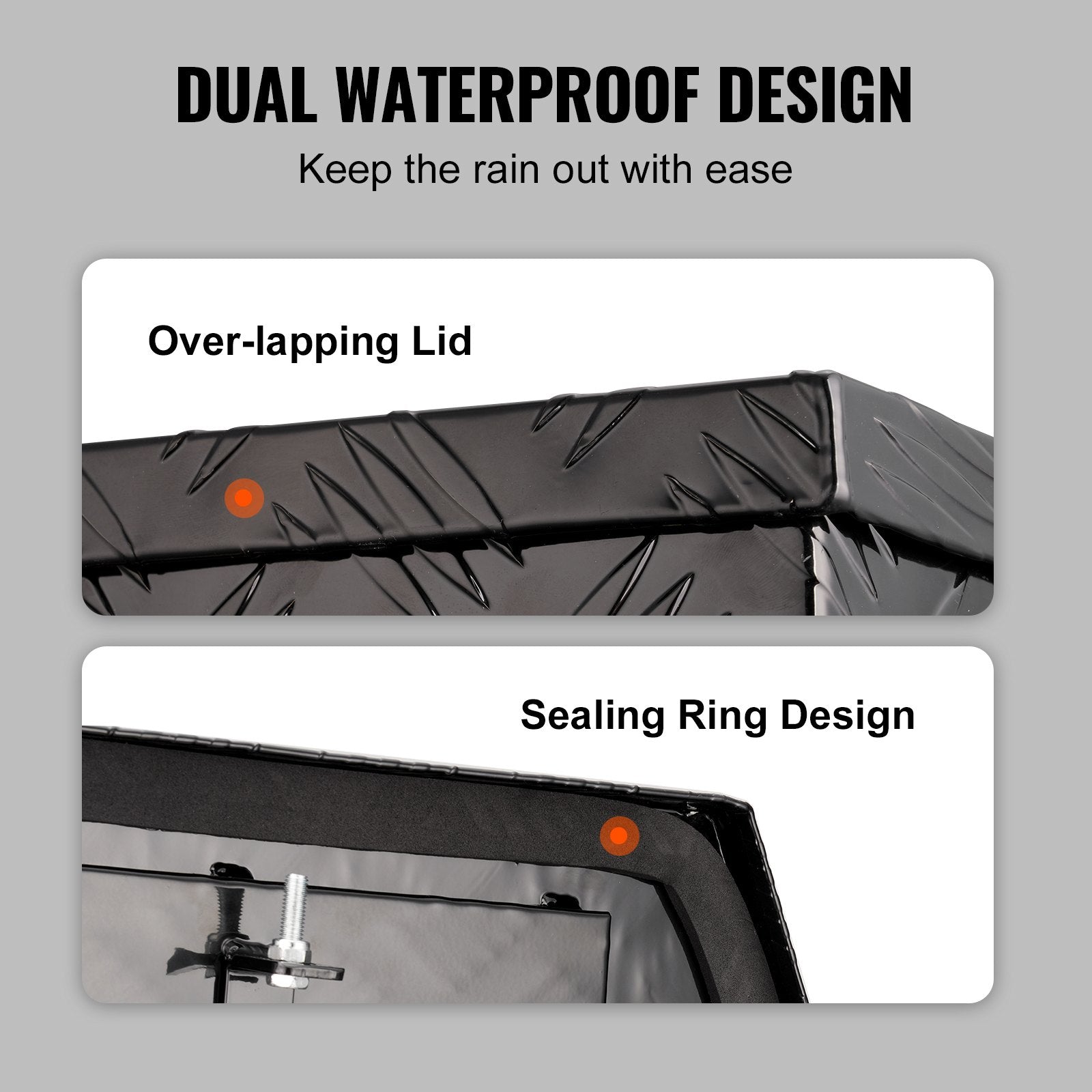 Experience ultimate protection against rain and snow. Our trailer tongue box features an over-lapping door and an extra-wide sealing strip, ensuring a tight seal that shields against water intrusion. Keep your belongings dry, clean, and well-protected, even in harsh weather conditions.