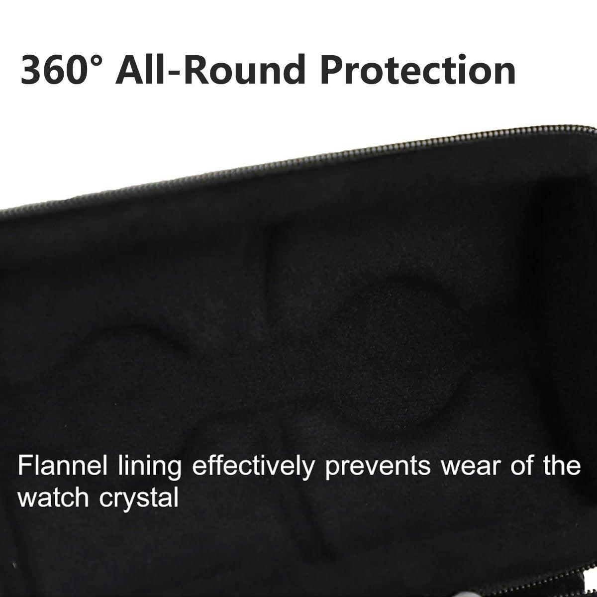 This portable watch organiser offers a secure and stylish solution for watch enthusiasts who need to keep their watches safe while on the go. Made from durable EVA material, this watch box provides excellent impact resistance, water resistance, and shock absorption. Inside, a soft flannel lining and removable sponge pads ensure 360° all-around protection for your watches, guarding against scratches and shocks. Compact and lightweight, it’s the perfect travel companion to store two watches securely.