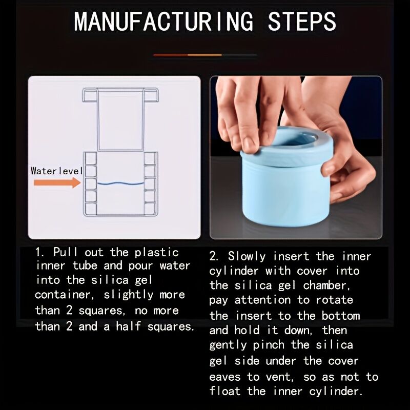 The innovative silicone mold paired with a removable inner cylinder makes operation simplecomplete in just four steps: add water, insert, let sit, and press to release. Each ice cube is precisely sized at the optimal 1.3cm, quickly cooling drinks while maintaining icy freshness for about ten minutes, perfectly balancing cooling efficiency and melting speed. No more slow-cooling large ice cubes or quickly melting crushed ice.