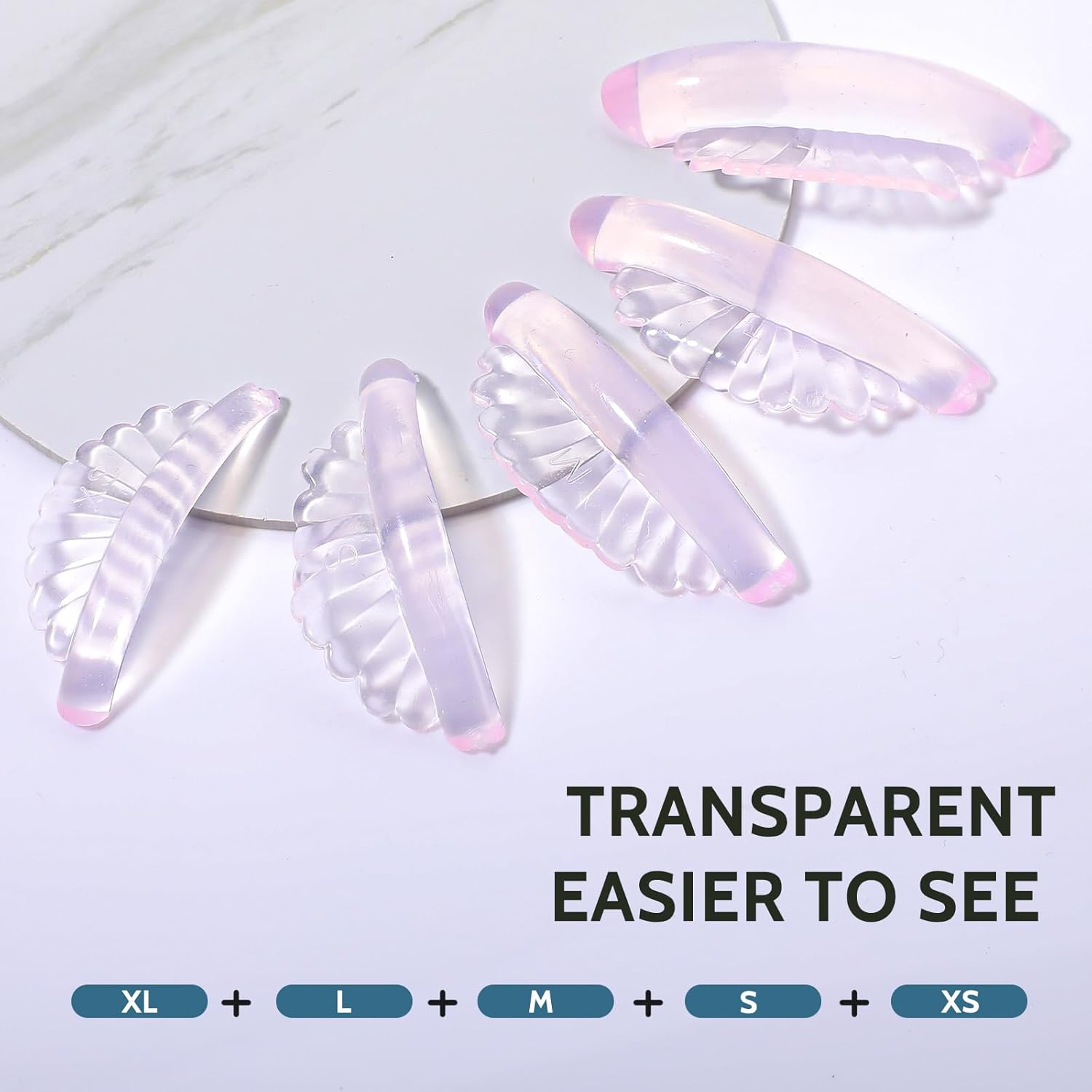 10 Pcs 5 Sizes Lash Lift Pads Self-Adhesive Super Soft Shell Pink Lash Perming Curler Shield Pads Reusable Professional Silicone Eyelash Curlers for All Eye Shapes Lash Lifting