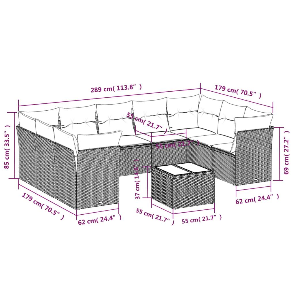 10 Piece Garden Sofa Set with Cushions Beige Poly Rattan