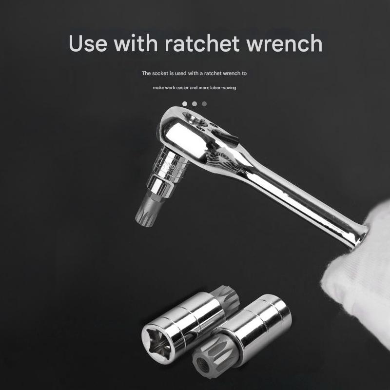 This product does not contain a lithium battery. Always use the correct size socket for the fastener to prevent damage to the socket or fastener head. Ensure the socket is fully seated on the drive tool before applying torque. Do not use impact tools with these sockets unless they are specifically rated for impact use. Keep tools clean and dry to prevent corrosion. Product packaging may vary slightly in appearance. Manual measurements may have minor errors; refer to the actual product for precise dimensions.