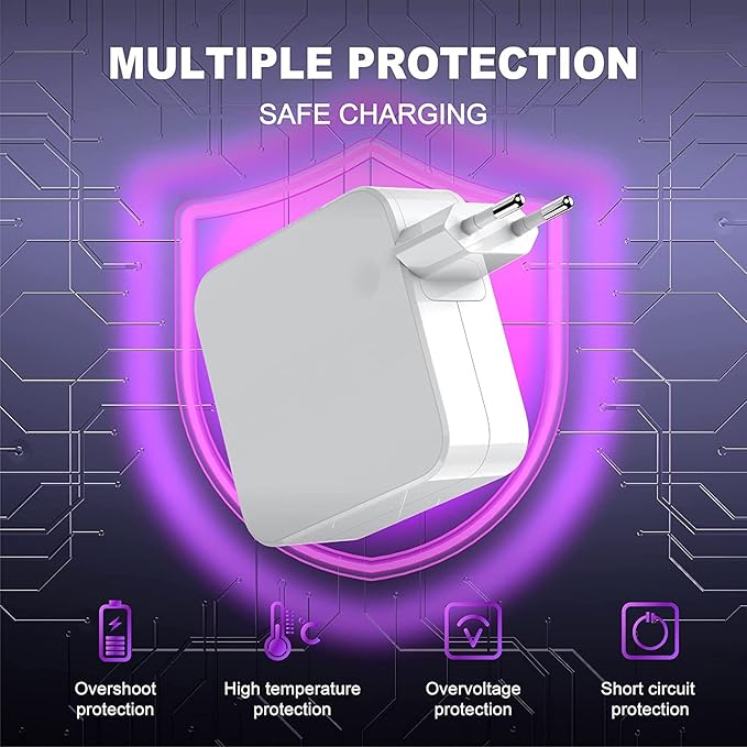 【Specifications】: Output: 20V5A, 20V/20.5V4.7A, 15V3A, 12V3A, 9V3A, 5V3A MAX 100W (compatible with 96W, 87W); Input: 100V-240V 50-60Hz; Port size: Type C/ USB C. Higher charging efficiency with advanced technology】100W 96W Type C AC adapter. The USB-C to USB-C 5A cable has a built-in Emark smart chip that automatically detects the voltage required by devices while providing data transfer speeds of up to 480Mbps. 【Compatible with】Macbook Pro 13-inch M2 2022/M1 2020/2019/2018/2017/2016 two/four Thunderbolt 3 ports (A1706 A1707 A1708 A1718 A2442); Macbook Pro 14-inch 2021 (A2442); Macbook Pro 15-inch 2019/2018/2017/2016 (A1706 A1707 A1708 A1719); Macbook Pro 16-inch 2019; Charger for MacBook Pro . 【Compatible with】MacBook Air M2 2022/M1 2020; MacBook Air 13-inch Retina 2020/2019/2018; MacBook 12-inch Retina 2017/early 2016/2015; Pad Pro 12.9-inch (6th/5th/4th/3rd generation); Pad Pro 11-inch (4th/3rd/2nd/1st generation); Pad Air 5/4; Route 10; Path mini 6; MacBook Air Charger Charger. 【5A 1.8M USB C to USB C Charging Cable】: Supports a maximum output of 100W, ensuring stable, powerful transmission and faster data transfer speed between USB-C devices. The 1.8m USB-C to C cable makes it easy to work and charge your laptop anywhere. Made of sturdy and high-quality material, it is still durable after high-strength bending and tensile tests, and avoids cross-linking after winding. 【Advantage】: USB C power for MacBook Pro, making charging more efficient and convenient to connect. Compact and lightweight design, suitable for travel and office use. Make your life easier and more convenient. 100W Type C USB C fast charger made of the highest quality material against overcurrent, overvoltage, overload, short circuit protection and automatic recovery. Ensure the safety of you and your devices. 【What You Get】: 1*100W USB C Laptop Charger with 5A 1.8M USB C to USB C Cable Returns, Refunds and Replacements Products that are received faulty, damaged, or not as described are eligible for a return, refund, or replacement in accordance with the Australian Consumer Law (ACL). We are committed to ensuring all products meet the standards of quality and reliability expected by our customers. However, please note that we do not accept returns or provide refunds for change of mind. We encourage you to carefully consider your purchase to ensure it meets your needs and expectations. Delivery Timeframe Please note that we cannot guarantee the exact date of arrival, and the delivery timeframes (excluding weekends and public holidays) are as follows: For customers in Victoria, approximately 7-10 working days; For customers in NSW, SA, ACT, and QLD, approximately 9-12 working days; For customers in WA, NT, and TAS, approximately 9-12 working days.