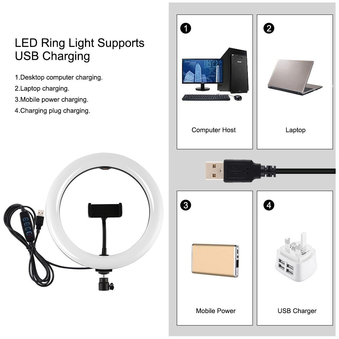 • 1 x 1.65M Tripod Mount & Dual Phone Brackets & 10.2 Inch 26Cm Curved Surface Usb 3 Modes Dimmable Dual Colour Temperature Ring Selfie Vlogging Video Light Live Broadcast Kits With Phone Clamp & Selfie Remote Control Black