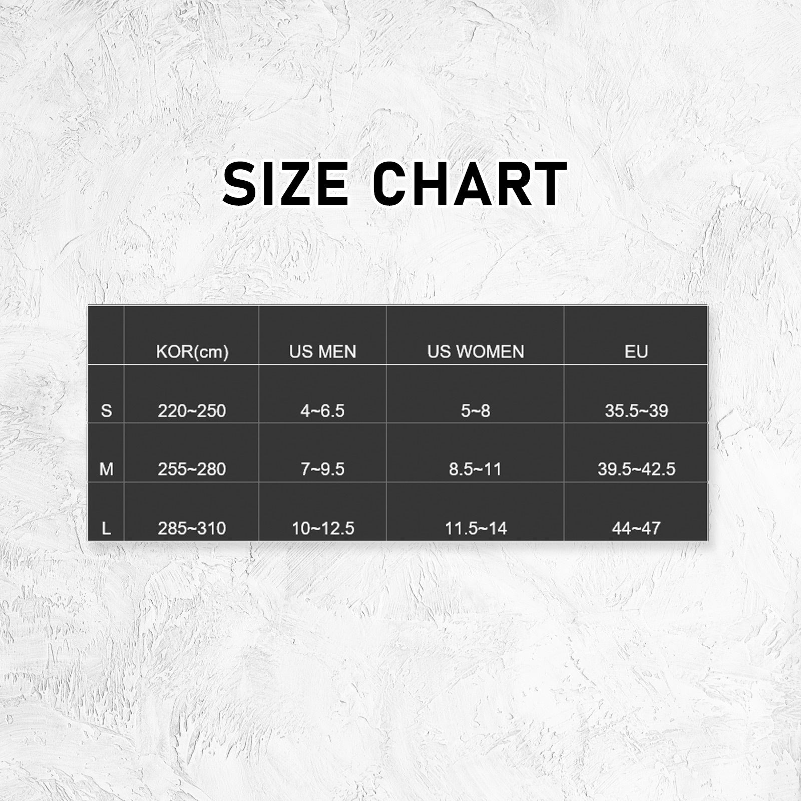 Sock Size Guide: Refer to the size chart photo