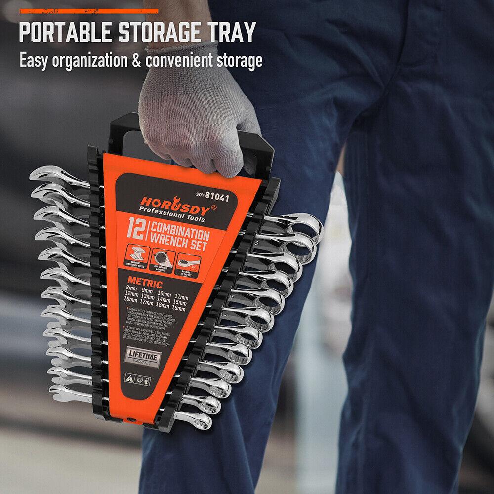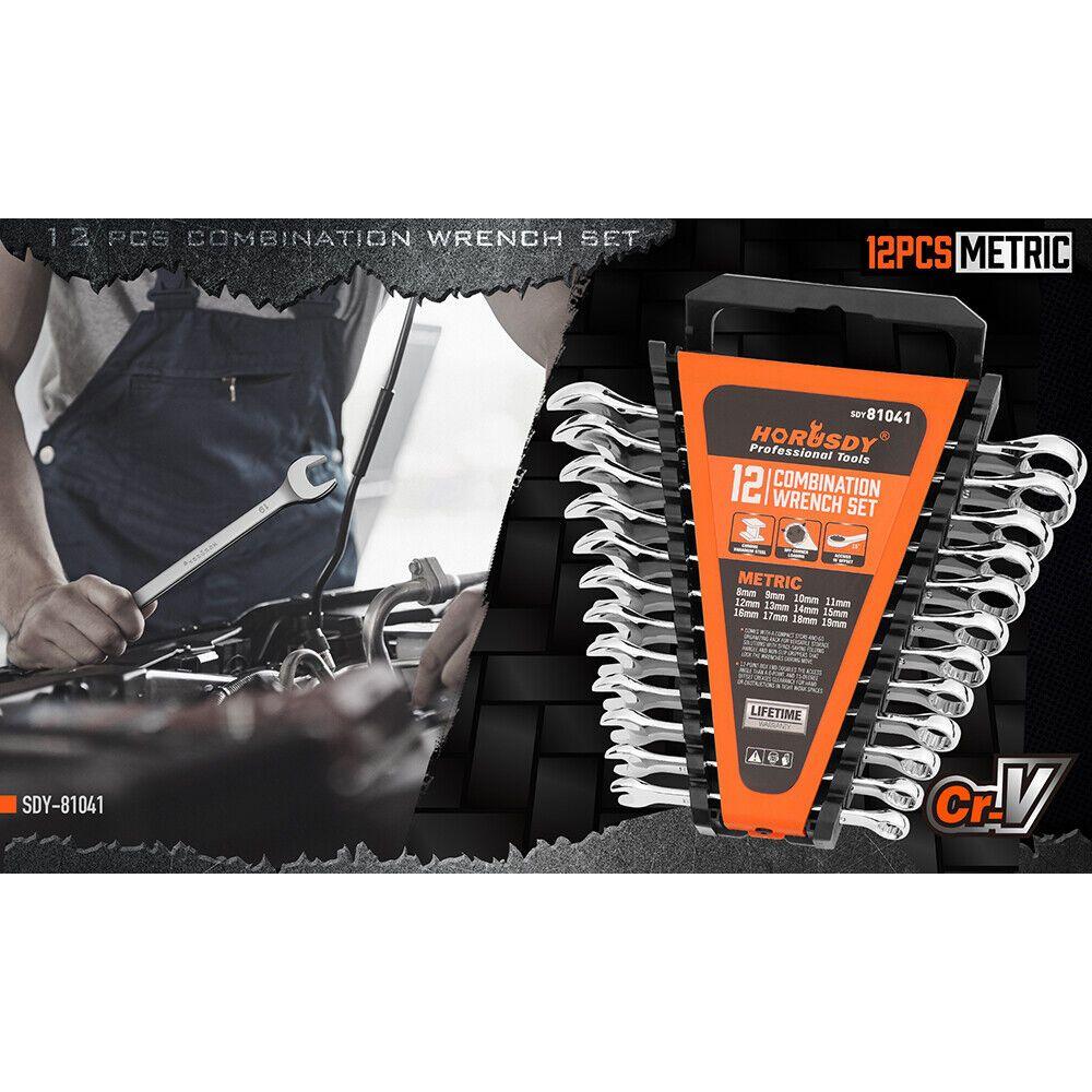 12x Metric Combination Spanner Ring Open Ended Combo Wrench CRV Storage Tool