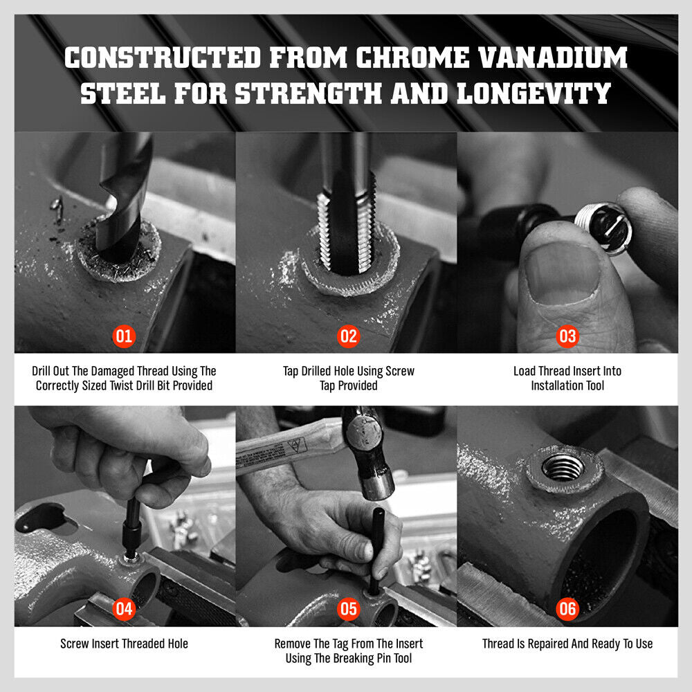 131Pc Metric Thread Repair Kit HSS Drill Helicoil Set Heli Coil Tap Insert with Case