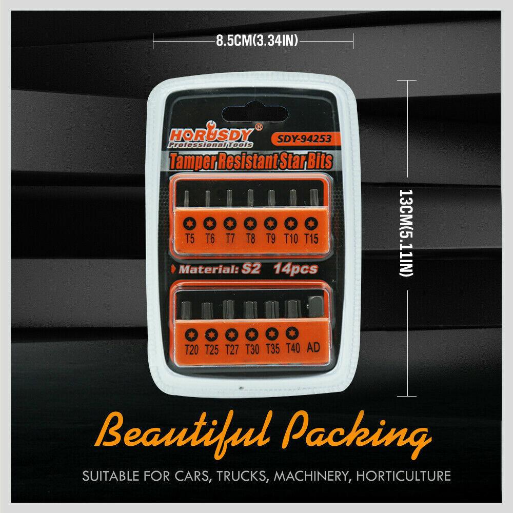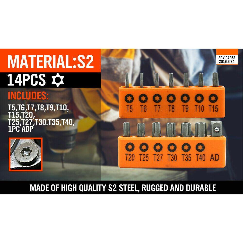 14Pc Torx Key Bit Set Tamper Proof Star Wrench Bits T5-T40 Socket Adapter S2 New