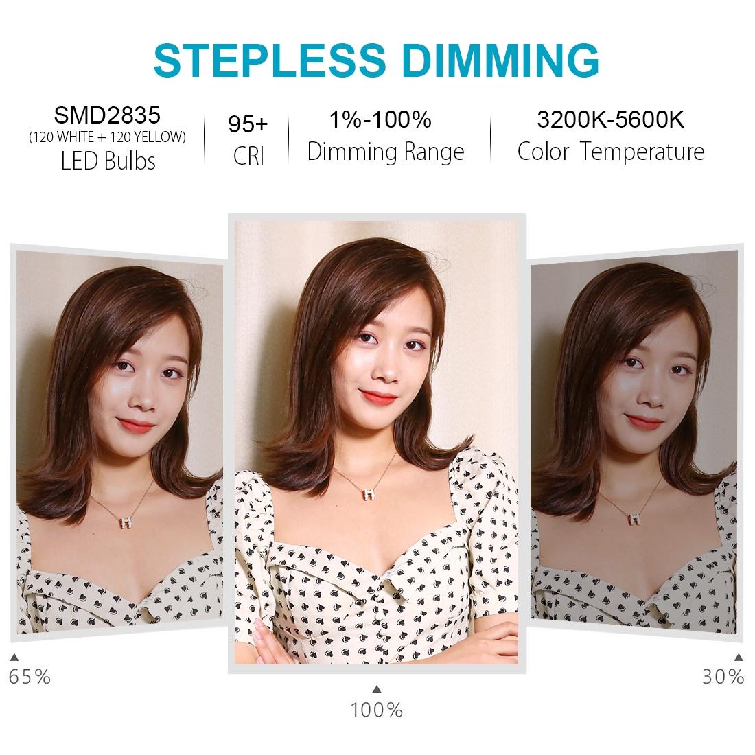 • Energy-saving LED beads with excellent heat dissipation and high colour rendering for enhanced skin tone in portraits