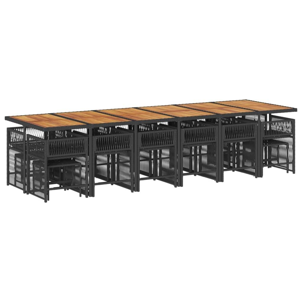 This garden dining set is a great choice for al fresco dining or just relaxing in the garden, backyard, or patio. Durable material: PE rattan, also known as poly rattan, is a strong, low-maintenance synthetic material that looks like natural rattan. It's lightweight, easy to clean, and commonly used for outdoor furniture due to its durability and weather-resistant properties.Compact storage: These chairs have a flap backrest that can be folded down, making it easy to store them under the table. When folded, they neatly fit under the table, forming a space-saving cube shape.Comfortable seat experience: This outdoor furniture, complete with thickly padded cushions, offers a comfortable seating experience.Removable and washable cover: These seat cushions feature removable covers for easy washing and maintenance. The cushion covers have a flap at the back for easy attachment to the backrests.Stable and easy-to-clean tabletop: This garden table has an acacia wood top that is sturdy, durable, and easy to clean with a damp cloth. Good to know:To make sure your outdoor furniture stays beautiful, we recommend protecting it with a waterproof cover.