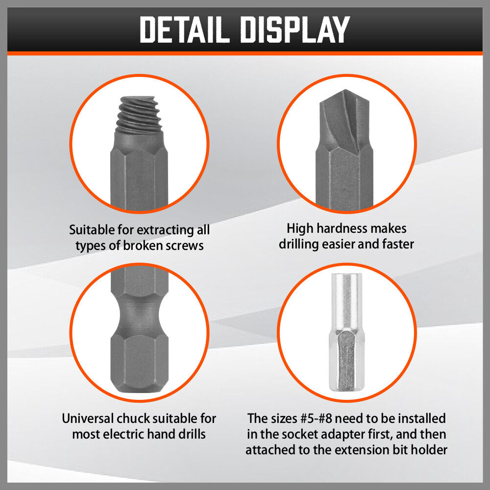18x Magnetic Damaged Screw Extractor Set Broken Drill Bit Remover Kit Hex Crv