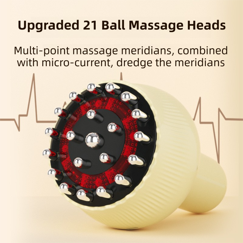 • Targeted Massage Heads: Equipped with 21 round massage beads specifically for the Meridian Brush function for enhanced scraping and rolling massage.