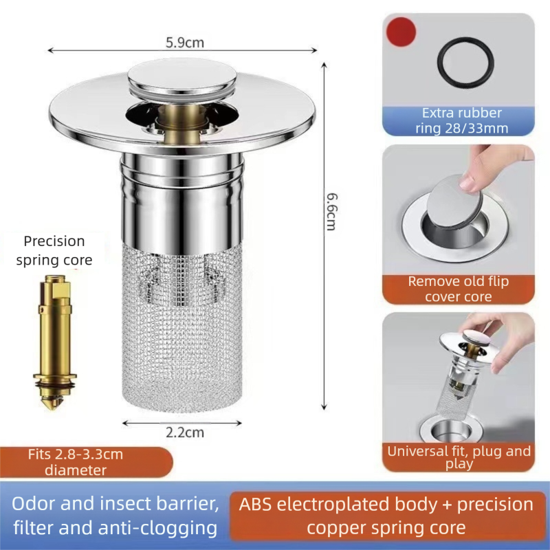 Upgrade your bathroom sink or basin with this 2-pack of advanced pop-up drain stoppers. Engineered to solve common drainage issues, the design features a quick-press mechanism for easy water sealing and fast draining, while providing powerful anti-odor and anti-clog protection. Installation is tool-free and simple—just plug it in to instantly replace your old stopper core.