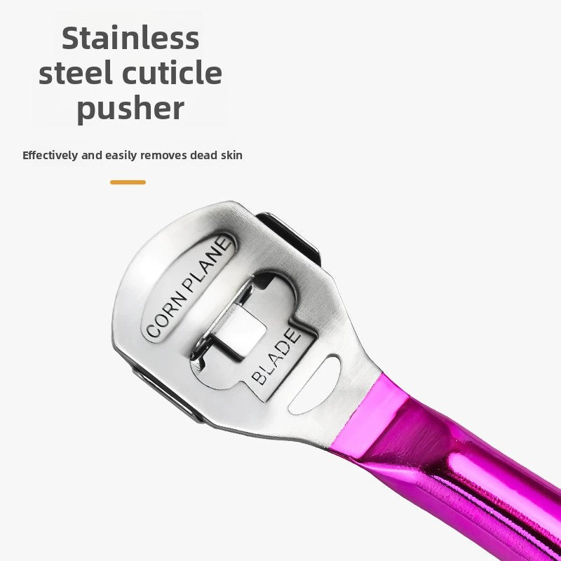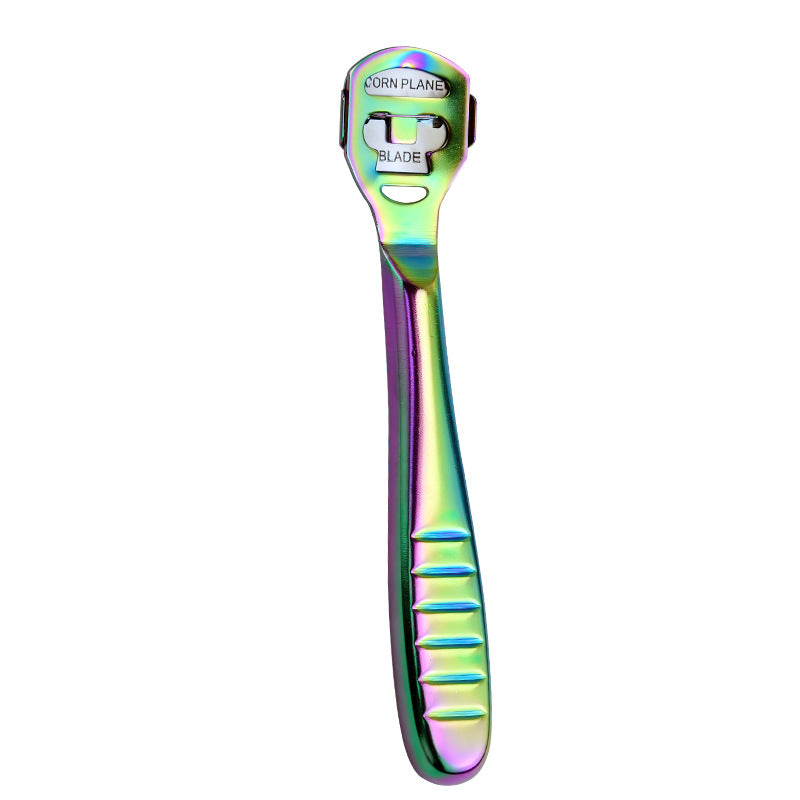 Achieve professional-quality pedicures at home with this durable stainless steel foot planer. Designed to safely and effectively remove hard calluses, dead skin, and tough corns from the soles and heels of your feet. The integrated, robust design ensures hygiene and longevity, providing a reliable tool for essential foot care and smoothing rough skin.