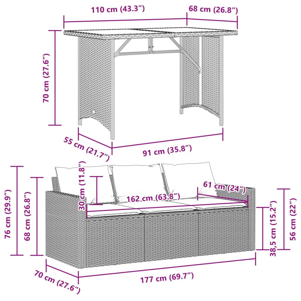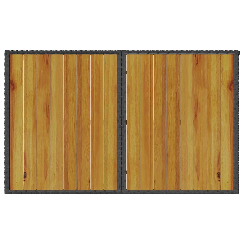 This garden dining set is a great choice for al fresco dining or just relaxing in the garden, backyard, or on the patio. Durable material: PE rattan, also known as poly rattan, is a strong, low-maintenance synthetic material that looks like natural rattan. It's lightweight, easy to clean, and commonly used for outdoor furniture due to its durability and weather-resistant properties.Wooden tabletop: The outdoor table's top is made from sturdy and durable acacia wood, making it easy to clean with a damp cloth and adding a touch of elegance to your outdoor space.Comfortable seat experience: This outdoor furniture, complete with thickly padded cushions, offers a comfortable seating experience.Removable and washable cover: These seat cushions feature removable covers for easy washing and maintenance.Robust and stable frame: The powder-coated steel frame ensures that the garden furniture is strong and stable for daily outdoor use. Good to know:To make sure your outdoor furniture stays beautiful, we recommend protecting it with a waterproof cover.