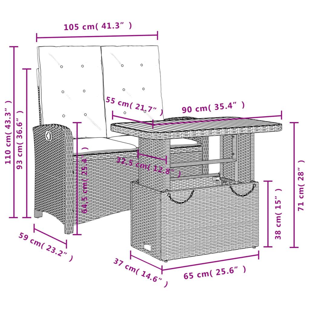 This garden dining set is a great choice for al fresco dining or just relaxing in the garden, backyard, or on the patio. Durable material: PE rattan, also known as poly rattan, is a strong, low-maintenance synthetic material that looks like natural rattan. It's lightweight, easy to clean, and commonly used for outdoor furniture due to its durability and weather-resistant properties.Adjustable backrest: This garden seat has a handle. You can adjust the backrest to any position by pulling the handle, and quickly return it to its original position.Adjustable tabletop: The tabletop can be lifted to make the table higher, which transforms the outdoor table from a coffee table to a dining table. It's perfect for having guests over or eating meals outside.Removable and washable cover: These seat cushions feature removable covers for easy washing and maintenance. The back cushions have a flap at the back for easy attachment to the backrests.Comfortable seat experience: This outdoor furniture, complete with thickly padded cushions, offers a comfortable seating experience. Good to know:To make sure your outdoor furniture stays beautiful, we recommend protecting it with a waterproof cover.