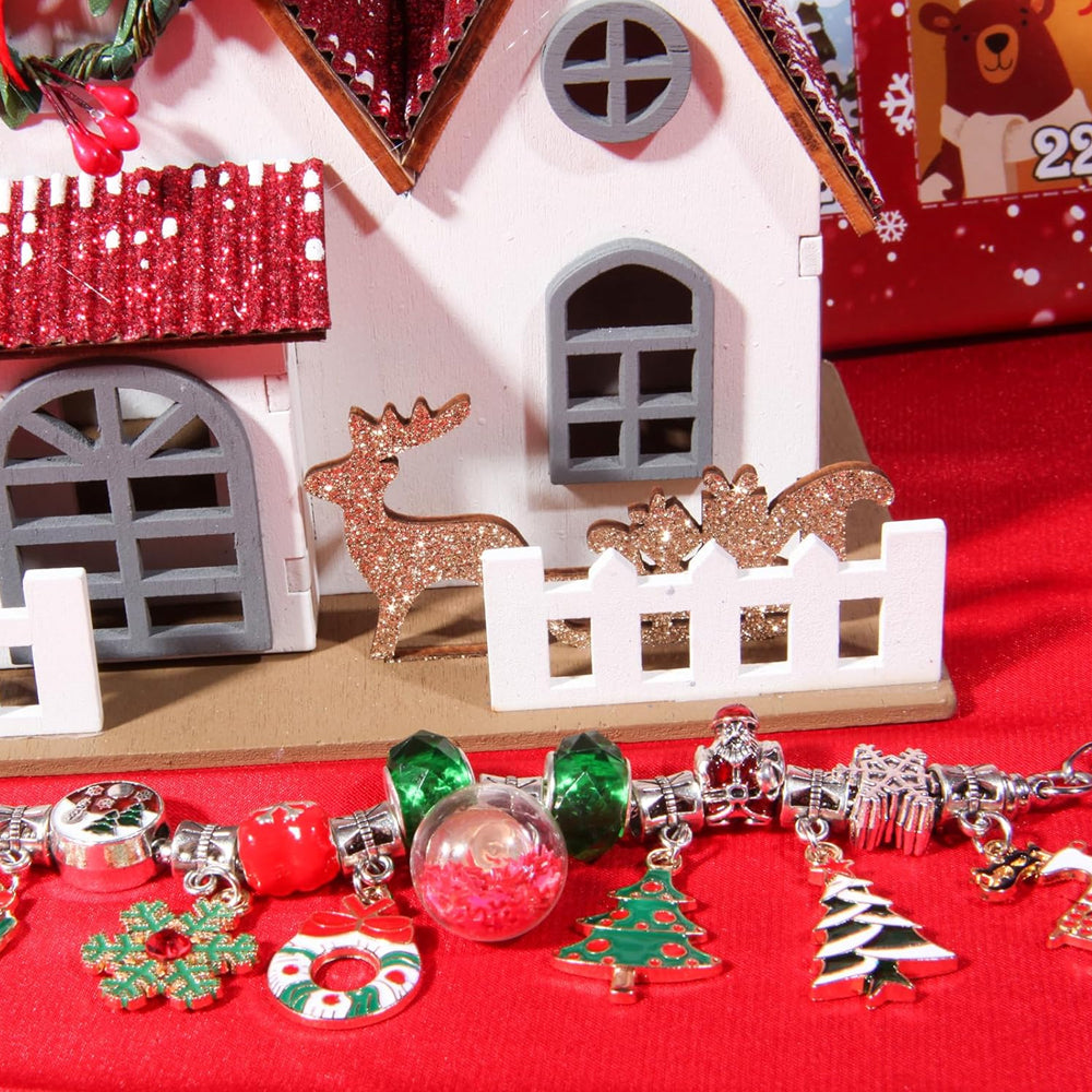 [Various Style Assortment]: This blind box craft set contains a variety of charming theme charms and colorful beads, including pendants such as Santa Claus, Christmas trees, snowflakes, snowmen, small bells, mini wish bottle pendants and a small moose, adding more imagination and style to your creative crafts and DIY bracelets. This is a great creative DIY bracelet making kit.