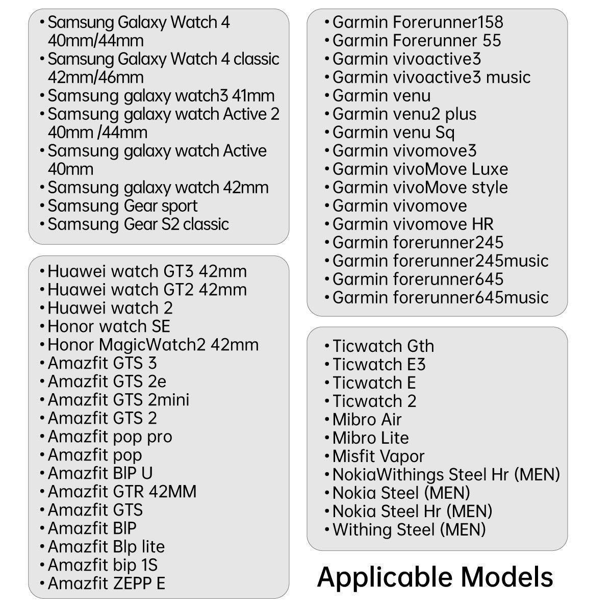 Universal Compatibility: Compatible with a wide range of 20mm lug width smartwatches, including Samsung, Huawei, Garmin, and more.