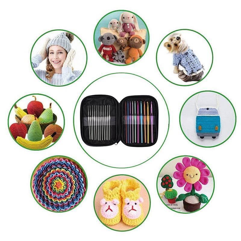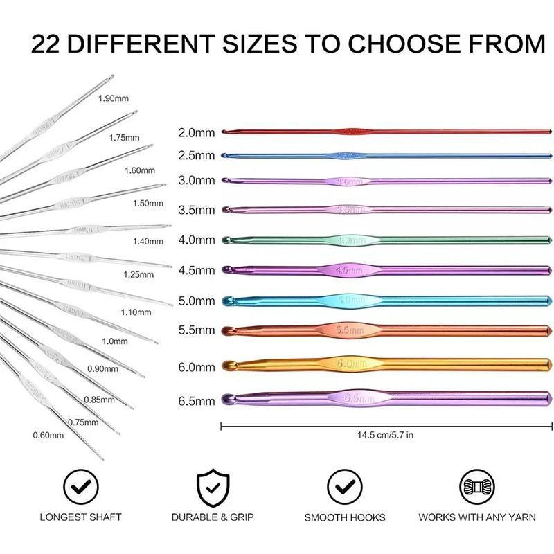 22PCS Crochet Hook Set Aluminium Knitting Needles with Case for DIY Yarn Craft