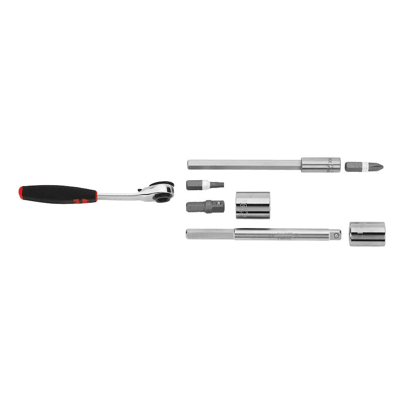 Compact 23 piece assortment of multi-socket wrenches in a metal box