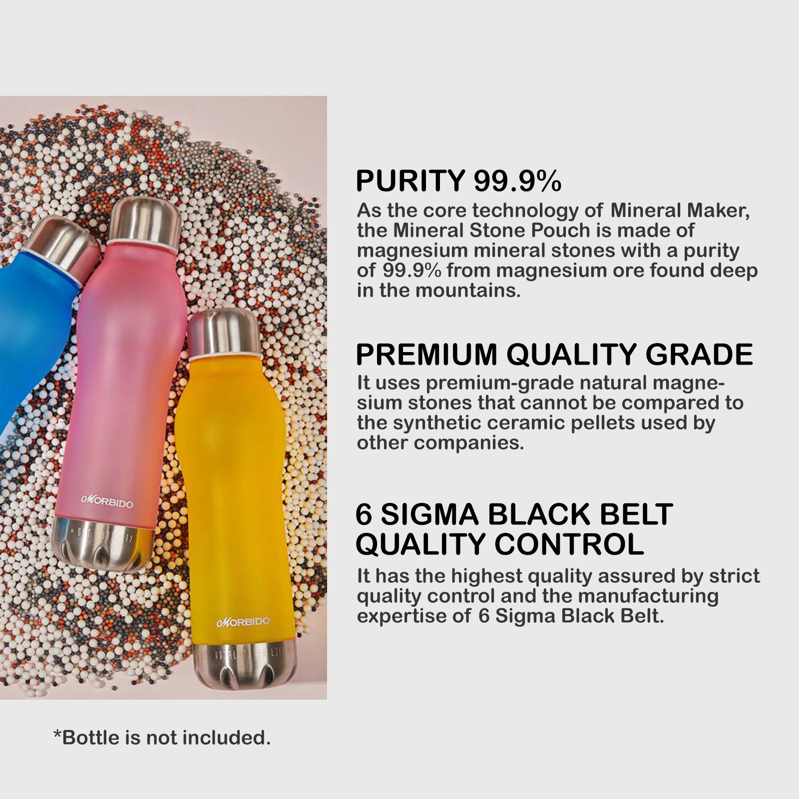 Our Mineral Stone Pouch contains 99.9% pure Magnesium minerals sourced from deep mountain Magnesium ore, crafted with precision using 6 Sigma Black Belt quality control and manufacturing expertise.