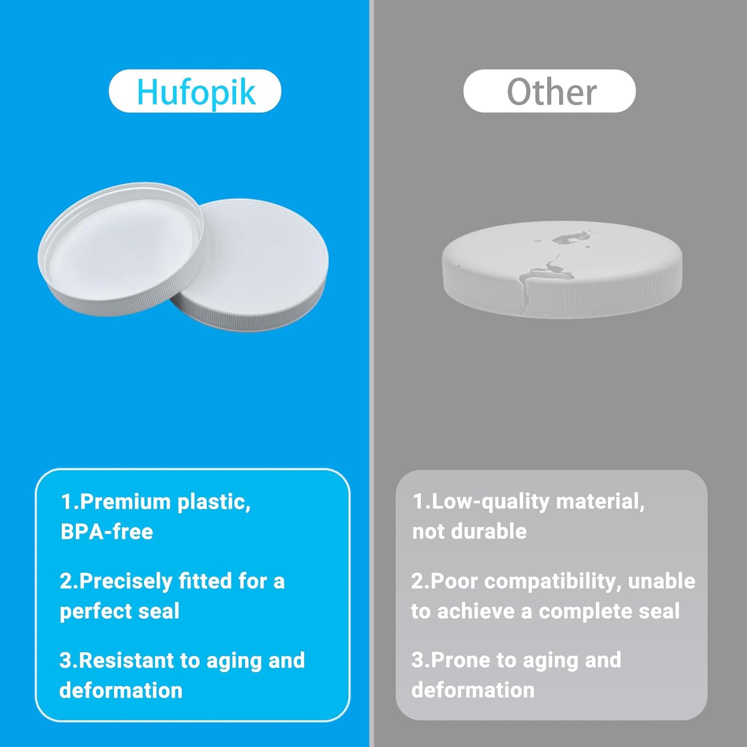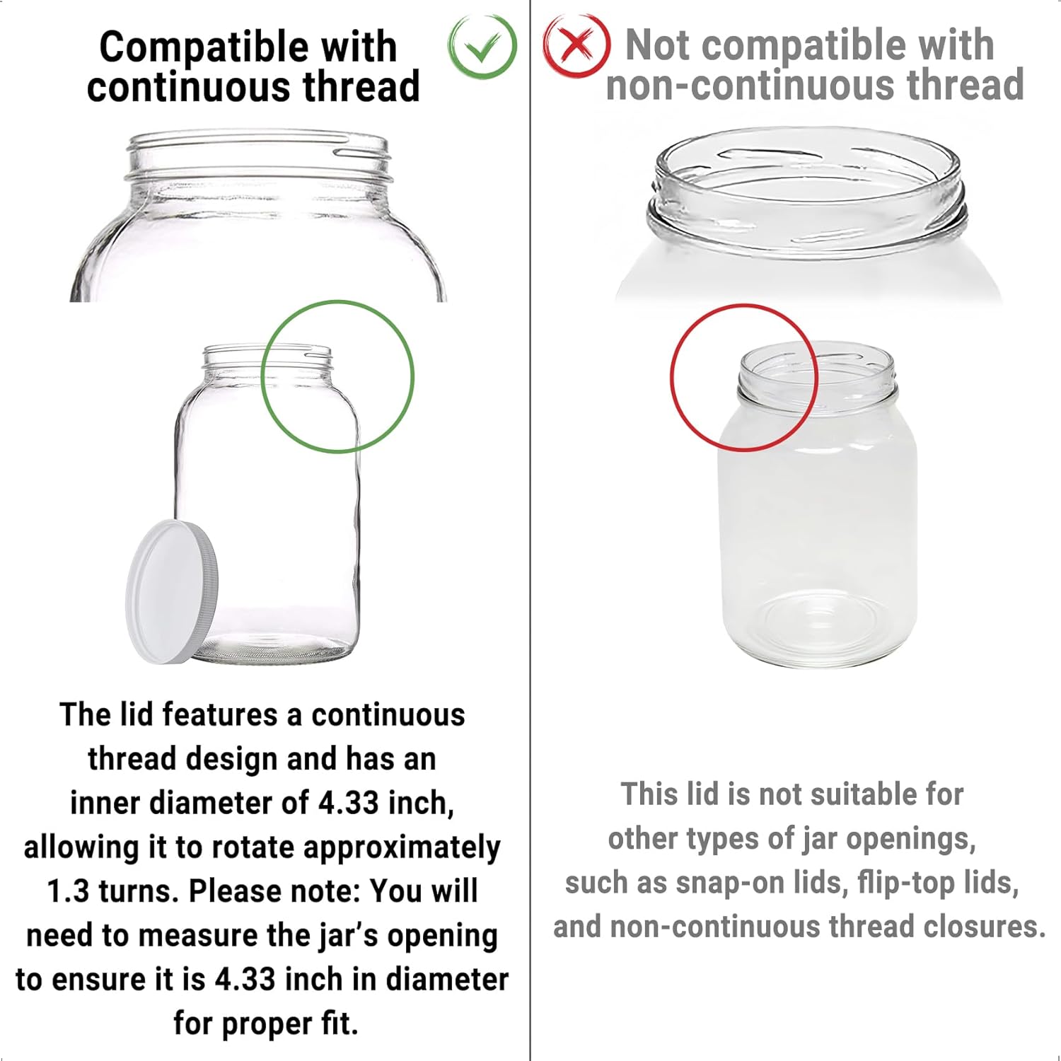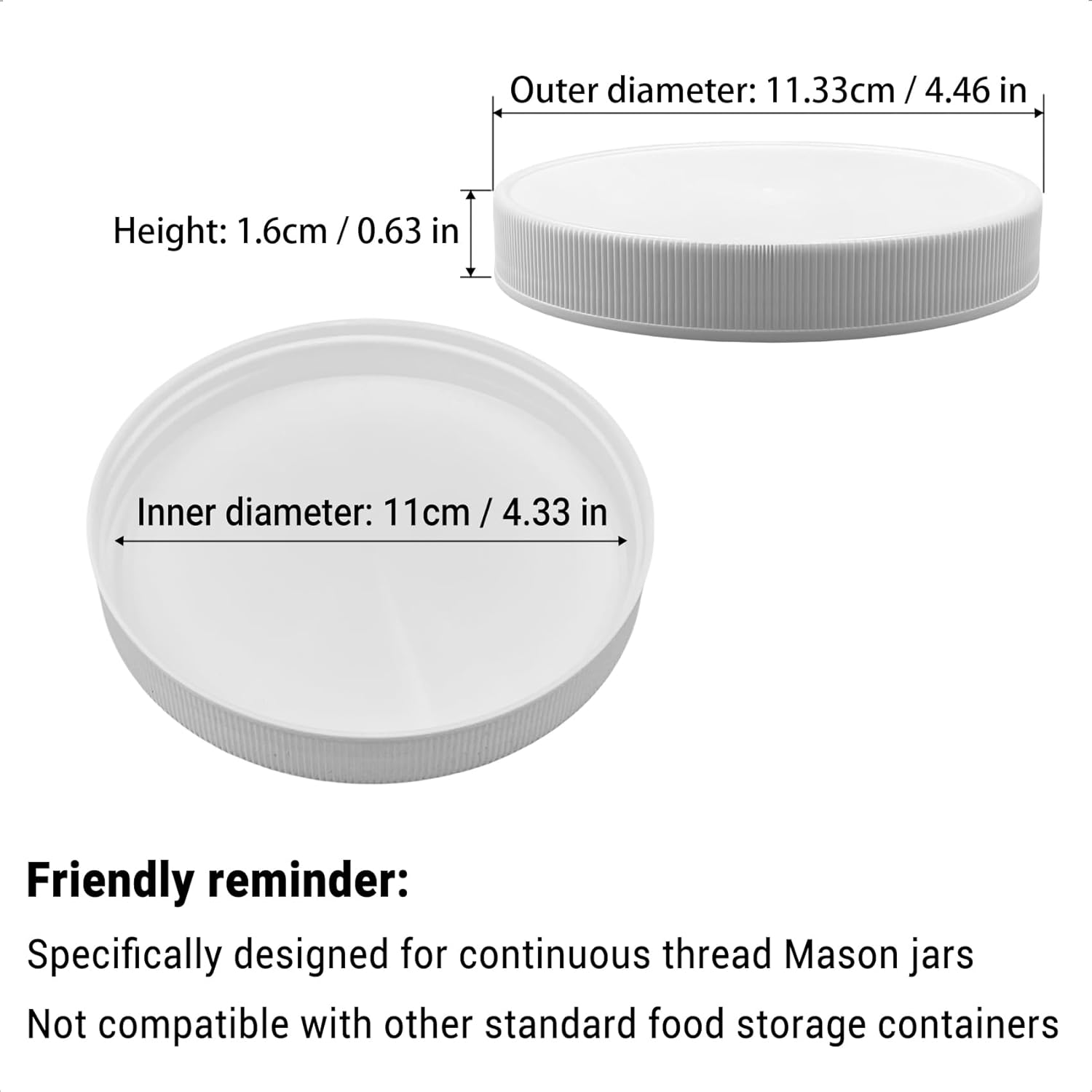 3 Pcs | 110/400 Plastic Replacement Lids | 4.33 inch Caps w/Leak Proof Liner | For Large Glass or Plastic Wide Mouth Jar, Food-Grade Storage Caps for Canning Jars