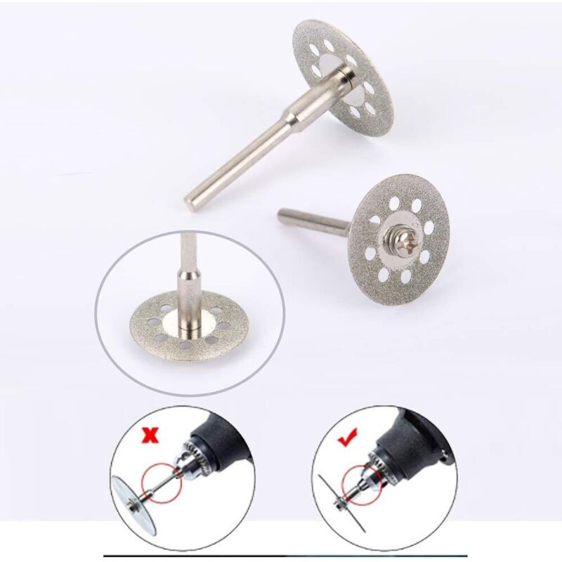 High-quality materials: Mini diamond cutting disc is made of alloy, with a layer of corundum, which has excellent hardness, more durable than other cutting blades. Suitable for finishing: This diamond cutting disc is small in size and cuts faster. It can make the cutting surface smooth and burr-free. Allows you to perform finishing, especially for narrow spaces and flat cutting. 22mm diamond cutting disc with ventilation holes: The 22mm circular diamond cutting disc also has ventilation holes, which is helpful for removing debris and cooling and effectively reducing the wear of the cutting disc. High compatibility: This kit includes 8 different sizes of ceramic cutting disc (16, 20, 22, 25, 30, 40, 50, 60mm) and 4 mandrels (3.2mm), compatible with most rotary tools, such as Silverline, GMC, Tacklife, Intertek Mini Grinder, B&D. Applications: Diamond cutting disc can cut metal, tile, marble, ceramic, glass, wood, gemstones and other materials. Also for delicate operations such as wood carving, polishing, cutting jade, quartz and agate, as well as for circuit repair.