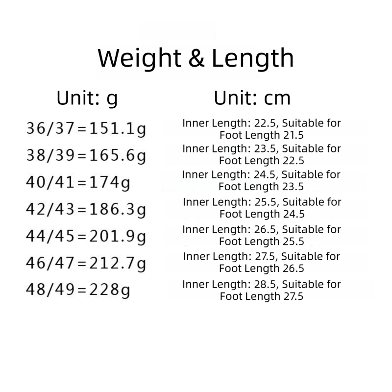 To ensure the best fit, please measure your foot length accurately and refer to the Suitable Foot Length column in the chart below.