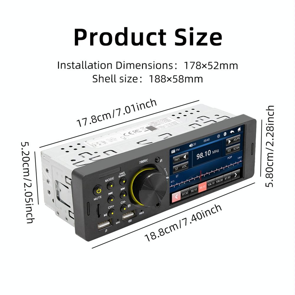 • 1 x 4.1 Inch Touch Screen Car Mp5 Player Fm Bluetooth Tf Card Remote Control