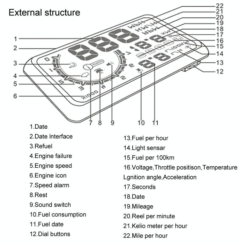 • 1 x 5.5 Inch Car Obdii Hud Fuel Consumption Warning System With Led