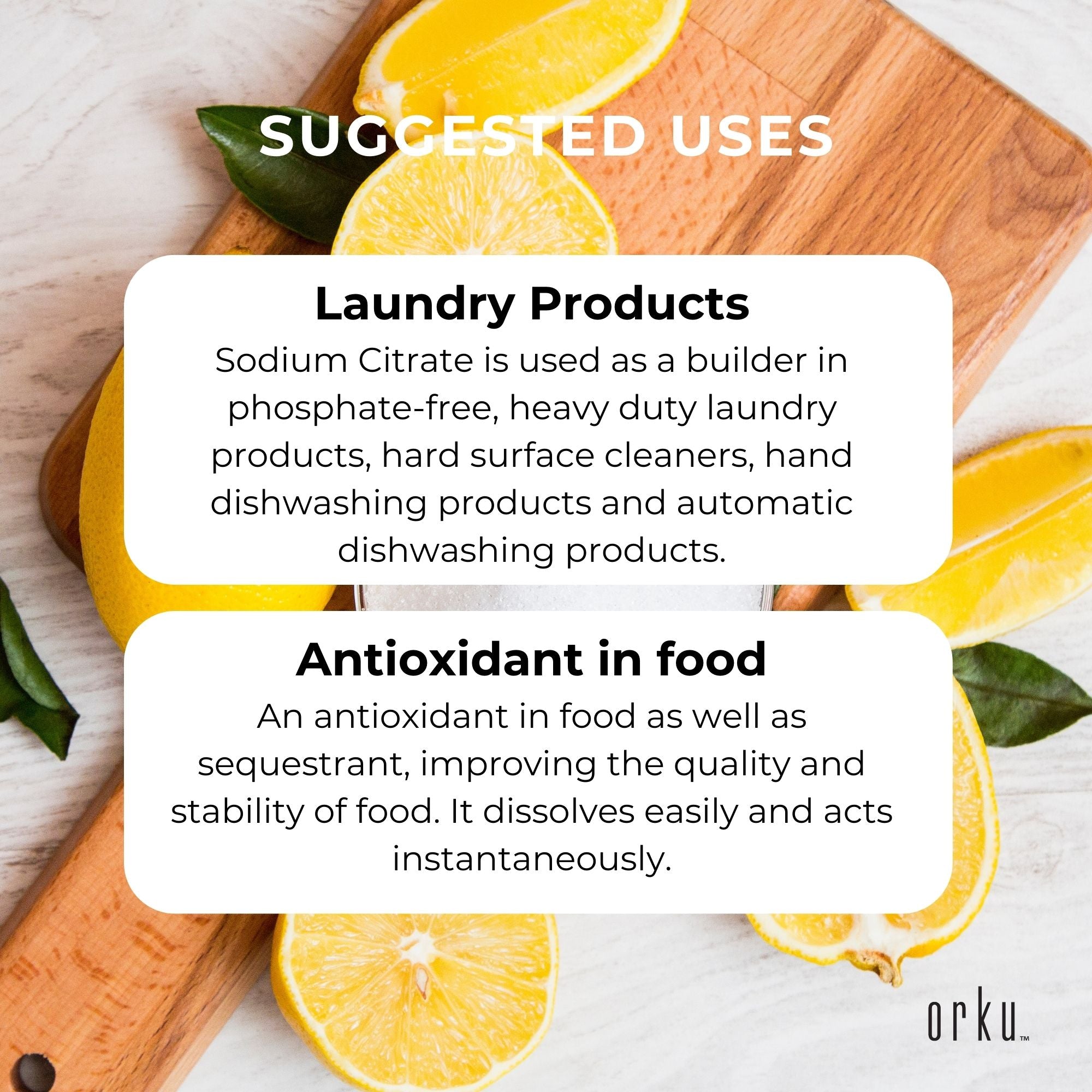 Sodium Citrate is used as a builder in phosphate-free, heavy duty laundry products, hard surface cleaners, hand dishwashing products and automatic dishwashing products.
